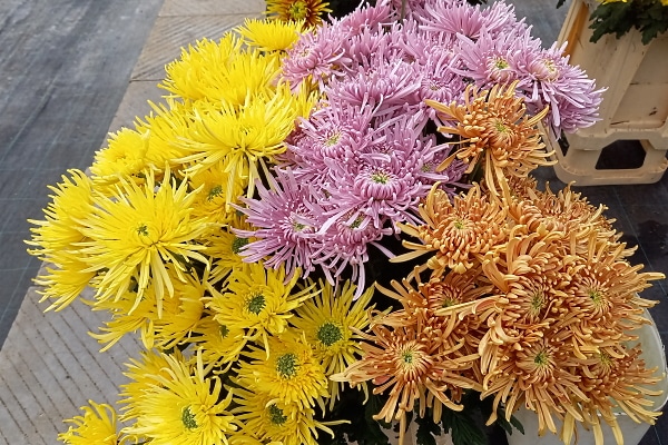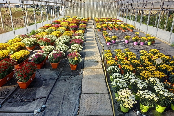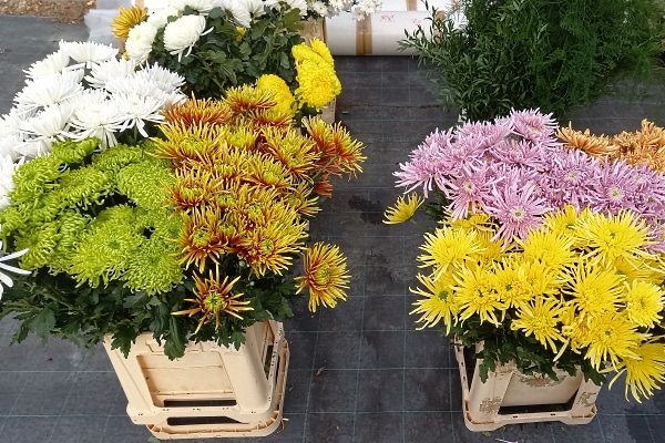 In vivaio si possono acquistare varietà di Crisantemi derivati da Chrysanthemum indicum, coltivati in diverse soluzioni: